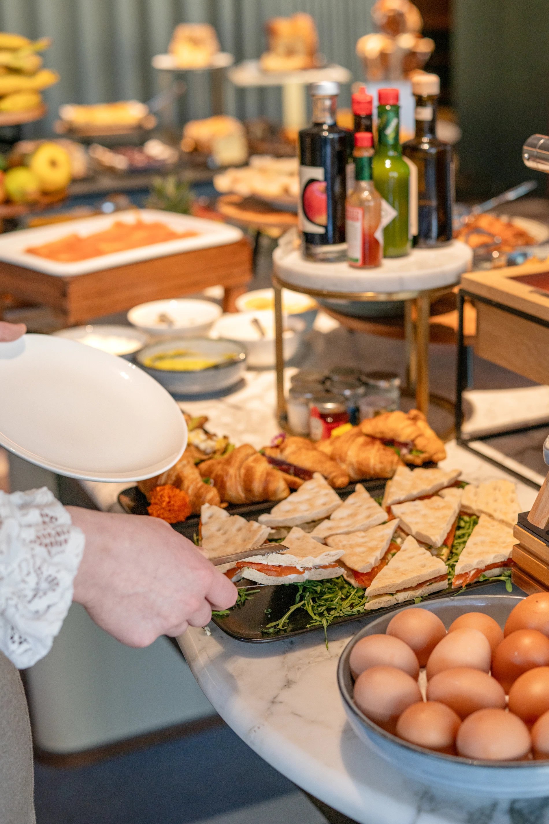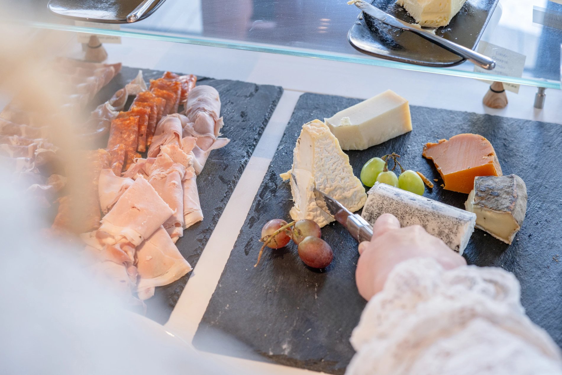 Auf der Speisekarte stehen eine große Auswahl an Gebäck wie Schokoladen-Croissants, normale Croissants, Rosinenbrötchen sowie eine Auswahl an speziellen Brotsorten mit Samen, Mais, Früchten und Getreide. Lust auf etwas Herzhaftes? Unsere Köche bereiten Spiegeleier, gefüllte Omeletten, pochierte Eier, Speck, Gemüse und mehr zu... Nicht zu vergessen unsere lokale Wurstwaren und verfeinerten Käsesorten.